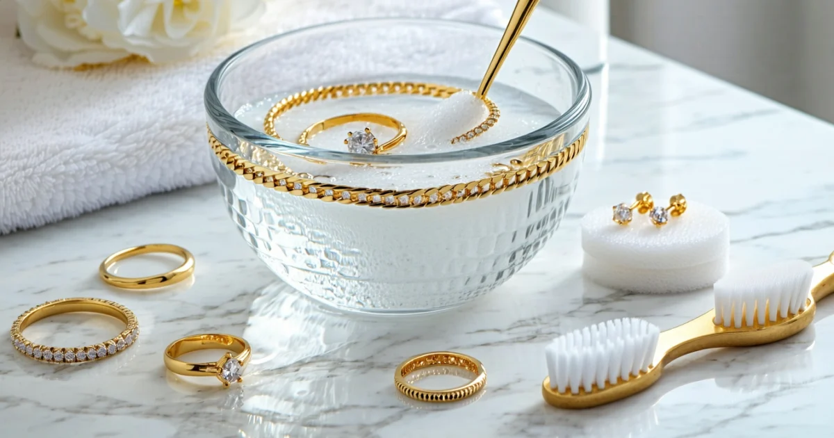 The most effective homemade cleaner combines warm water, mild dish soap, and a soft brush. For tougher stains, create a paste with baking soda and water, or use a 50/50 mixture of white vinegar and water. These household ingredients are safe, effective, and won’t damage your gold jewelry when used properly.